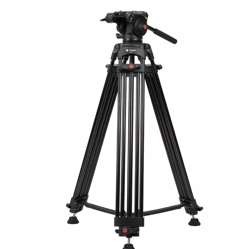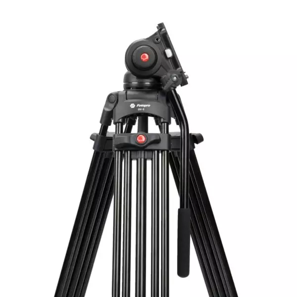 The FOTOPRO DV-2 ALUMINUM TRIPOD from Fotopro is a professional series tripod that supports cameras and accessories weighing up to 17.6 lb. The 3-stage leg design allows the tripod to have a height adjustment range from 26.7 to 70.8″, and the head is secured on a 75mm bowl that allows for quick repositioning and precise leveling without needing to tinker with the tripod legs. Features DV-2 with the motion balance system. According to the camera gear weight you are using you can have constant control despite the tilt degrees you need. Adjust the resilience of personal preference. Camera operation will be much easier and effort-free!