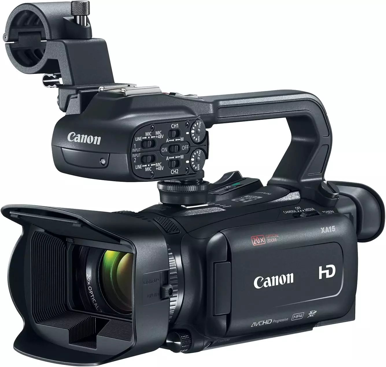 The Canon XA15 Professional Camcorder represents Canon’s Full HD System, delivering truly excellent image quality and reproduction for most any news-gathering application. With its 20x Optical Zoom HD Video lens, its HD CMOS Pro Image Sensor and the powerful DIGIC DV 4 Image Processor working together to capture and process the images at hand, the XA15 is positioned to deliver HD video that is nothing short of stunning.